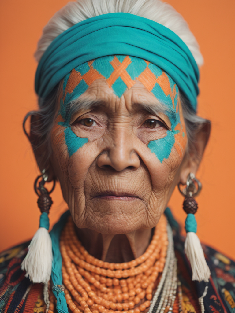 - native american old woman national dress traditional elderly indigenous cultural heritage portrait artwork