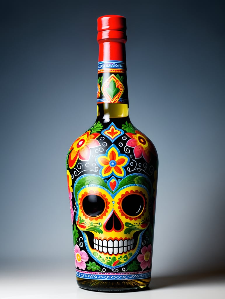 - Necesito que me ayudes a crear una imagen para la etiqueta de una botella de tequila de la marca Artequila, basado en el arte huichol y con referencia al día de San Valentín, o 14 de febrero. Es para una botella coleccionable de edición especial para esa fecha en la que se celebra al amor. La etiqueta quiero que no solo la presentes en la botella, sino que también esté en plano para poder apreciar todos los detalles. Ésta es una botella coleccionable, por eso es que el diseño debe ser llamativo y diferente a la etiqueta que tenemos normalmente. El arte huichol que necesito que consideres para la etiqueta es el que se hace con chaquiras de colores, me gustaría que utilices colores y figuras relacionados con el amor, debe incluir la palabra Passion en letras que den la impresión de estar en 3D. Puede ser con la fuente Valentines Passions Font de Yun Studio.