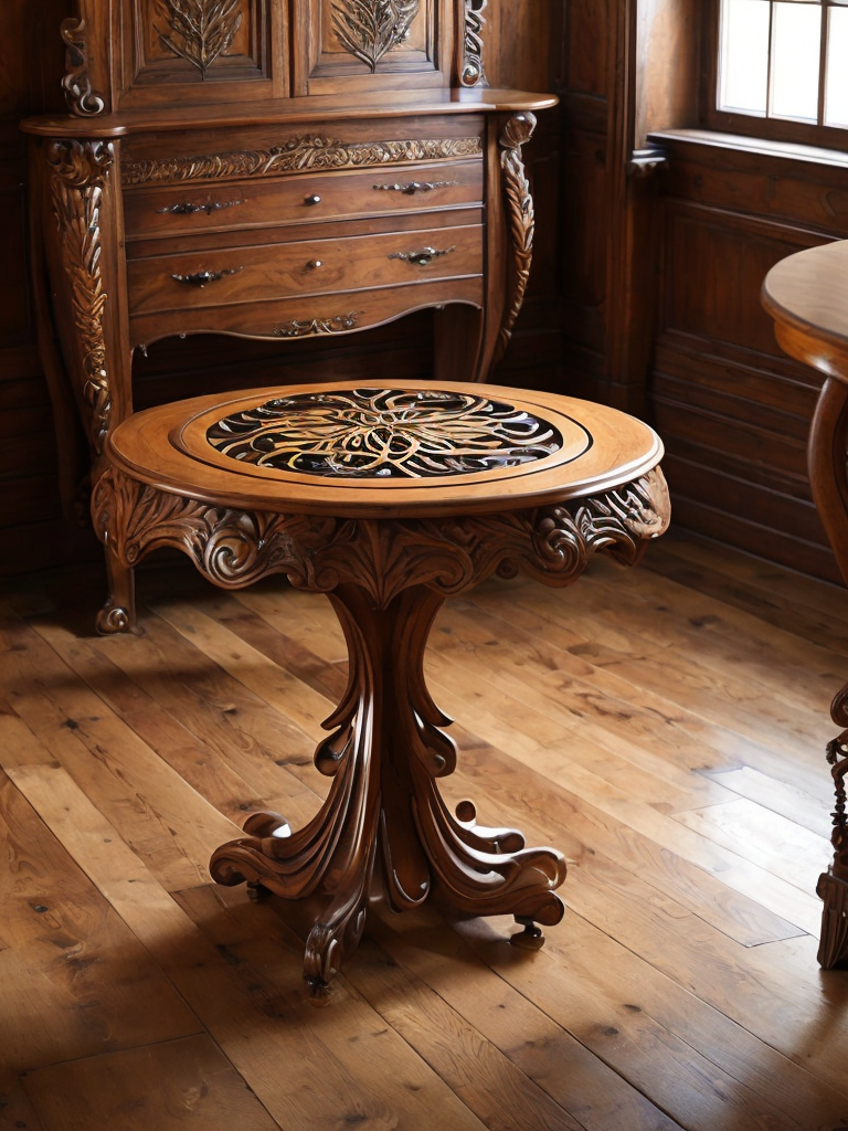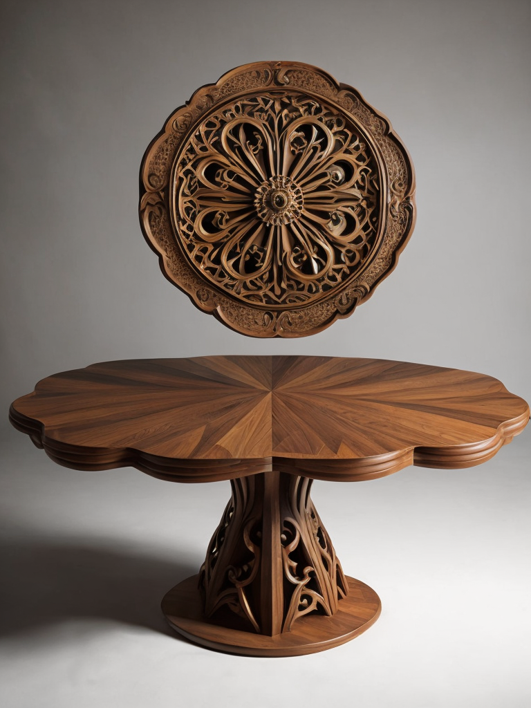 norwegian design furniture of a wood table in flower shape carved wood intricatehttps://lumenor.ai/terms-of-service/https://lumenor.ai/ai-generated-images-gallery/hlVk8c2UUv/lumenor AIlumenor AI