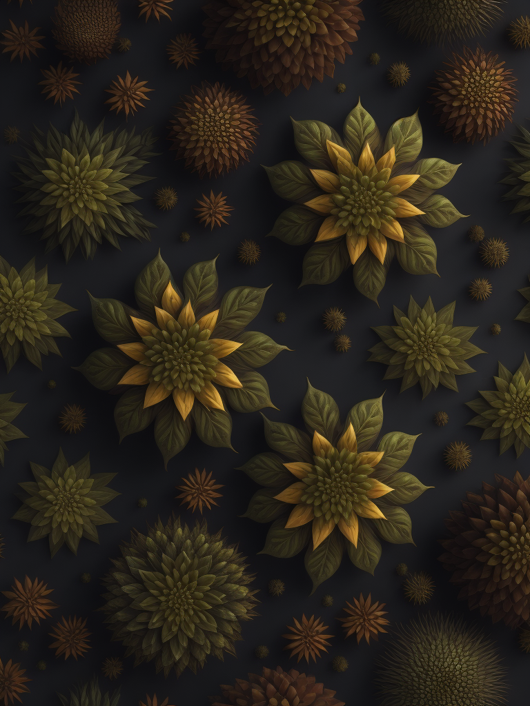 organic fractal plant pattern, texture, background, top view, organic texture, seamless texture, rich colors, contrast lighting, bright colors, detailed texture, 3d render, octane render,
