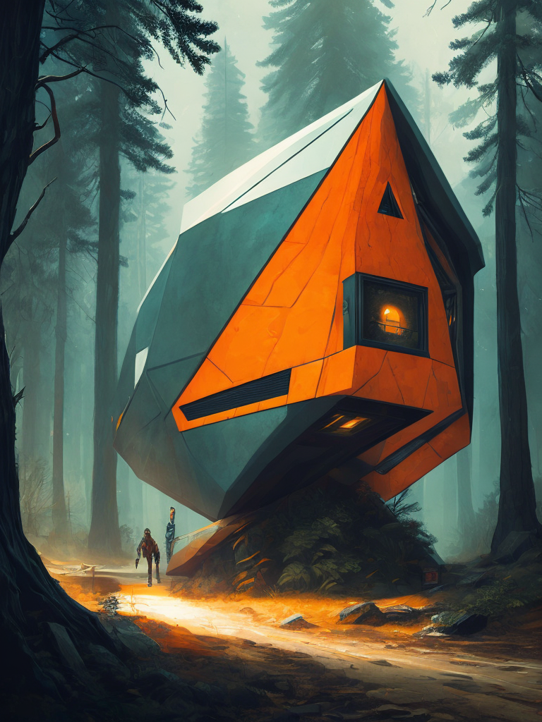 A photo of futuristic module one bedroom cubical house, deep atmosphere, in the forest, wilderness, wild naturehttps://lumenor.ai/terms-of-service/https://lumenor.ai/ai-generated-images-gallery/hcQCUymGD2/lumenor AIlumenor AI