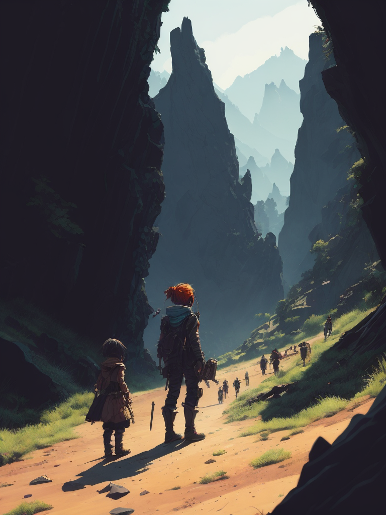 Photo of a helain kids design, slingshots, ultra detailed, clear earth realm, sky, full body close up, porcupines, caves, giant boulders, Akira Toriyama, James Gilleard, Genshin Impact, Trending Pixiv Fanbox, Acrylic Palette Knife, 4K, vibrant colors, DevinArt, trending on ArtStation, High Detail