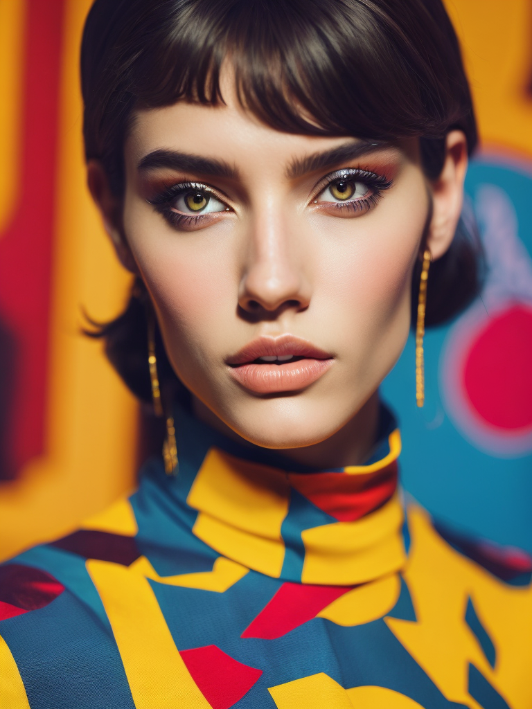 Photography of girl, face closeup, beauty girl in the style of Mary Quant, Vivid saturated colors, Contrast color, studio photo, professional photo, Rich colors, Detailed image, detailed facehttps://lumenor.ai/terms-of-service/https://lumenor.ai/ai-generated-images-gallery/hNFgOUiEgK/lumenor AIlumenor AI
