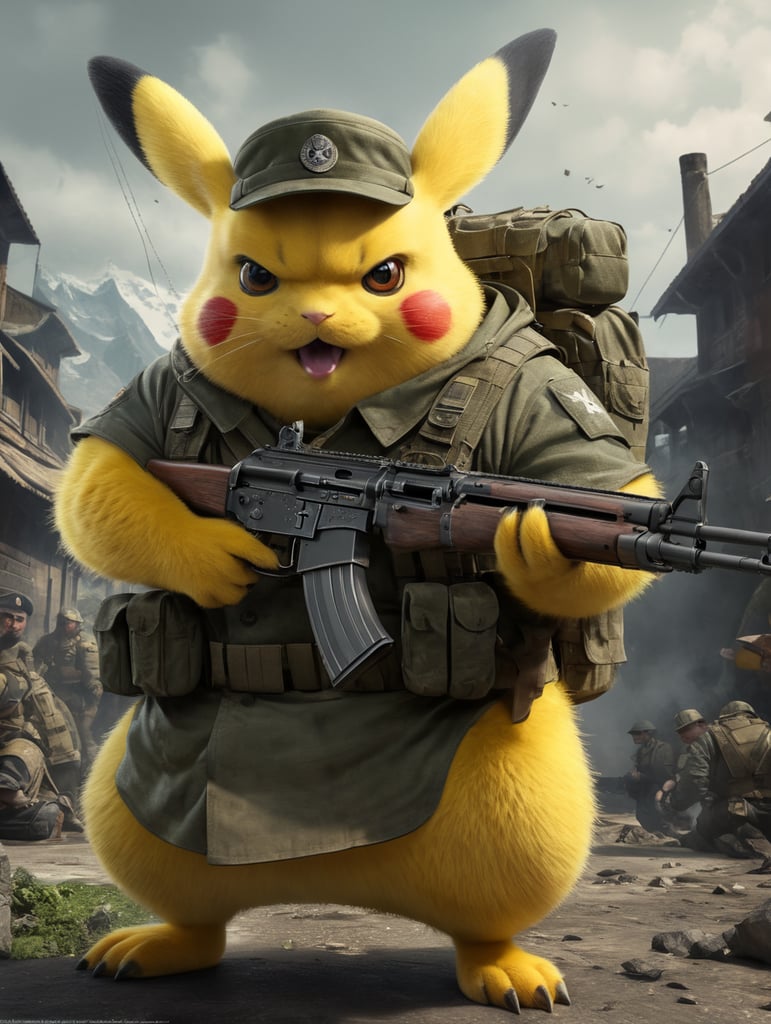- pifatchu angry pikachu fat pikachu military pikachu pikachu in military attire pifatchu with ak text to image creation pikachu character creative art cartoon pikachu