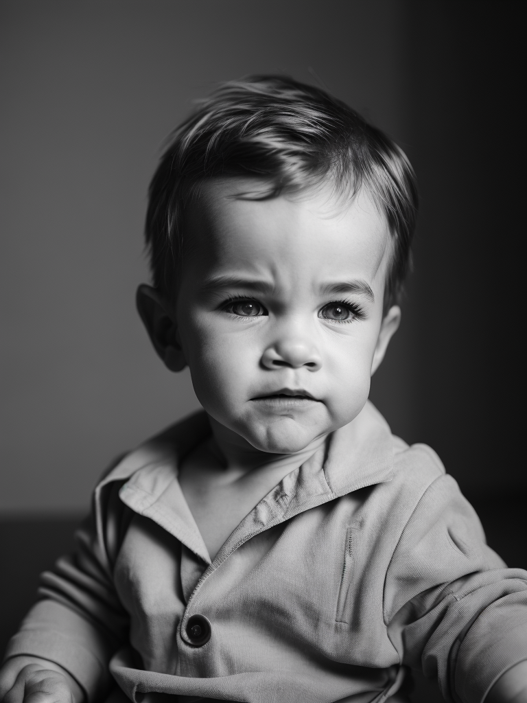 portrait of Arnold Schwarzenegger as a kid, 6 month old, happy emotions on his face
