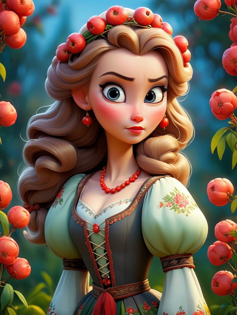 Portrait of a Beautiful women from Russian fairy tale wearing traditional costume around bunches of rowan