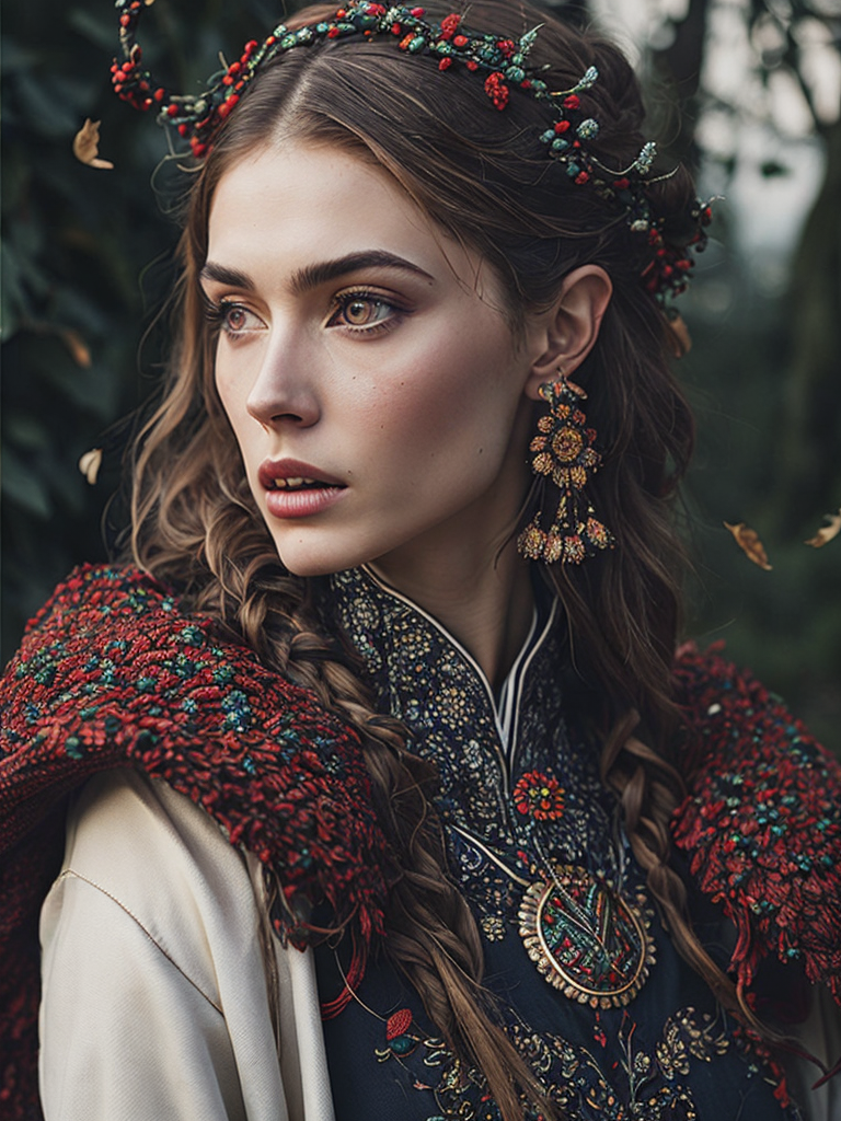 Portrait of a Beautiful women from Russian fairytale wearing traditional costume around bunches of rowanhttps://lumenor.ai/terms-of-service/https://lumenor.ai/ai-generated-images-gallery/hmlkRCD9oY/lumenor AIlumenor AI