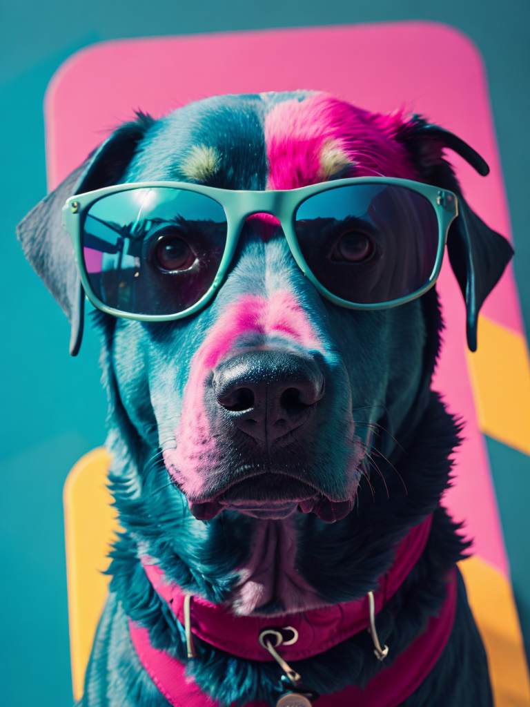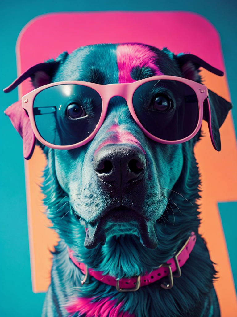 portrait of a blue dog, wearing green sunglasses, pink background, bright colorshttps://lumenor.ai/terms-of-service/https://lumenor.ai/ai-generated-images-gallery/hphXa1gdWC/lumenor AIlumenor AI