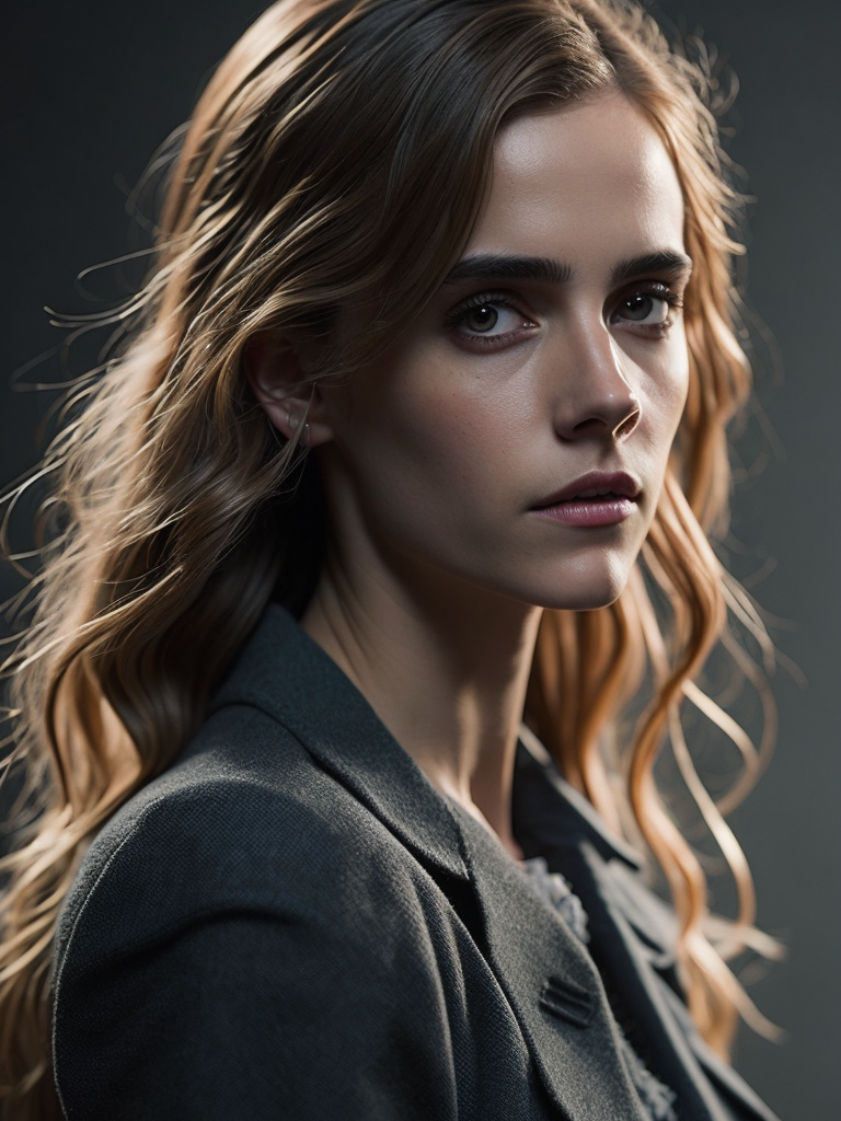 Portrait of Emma Watson, ultra realistic, Long hair, detailed background