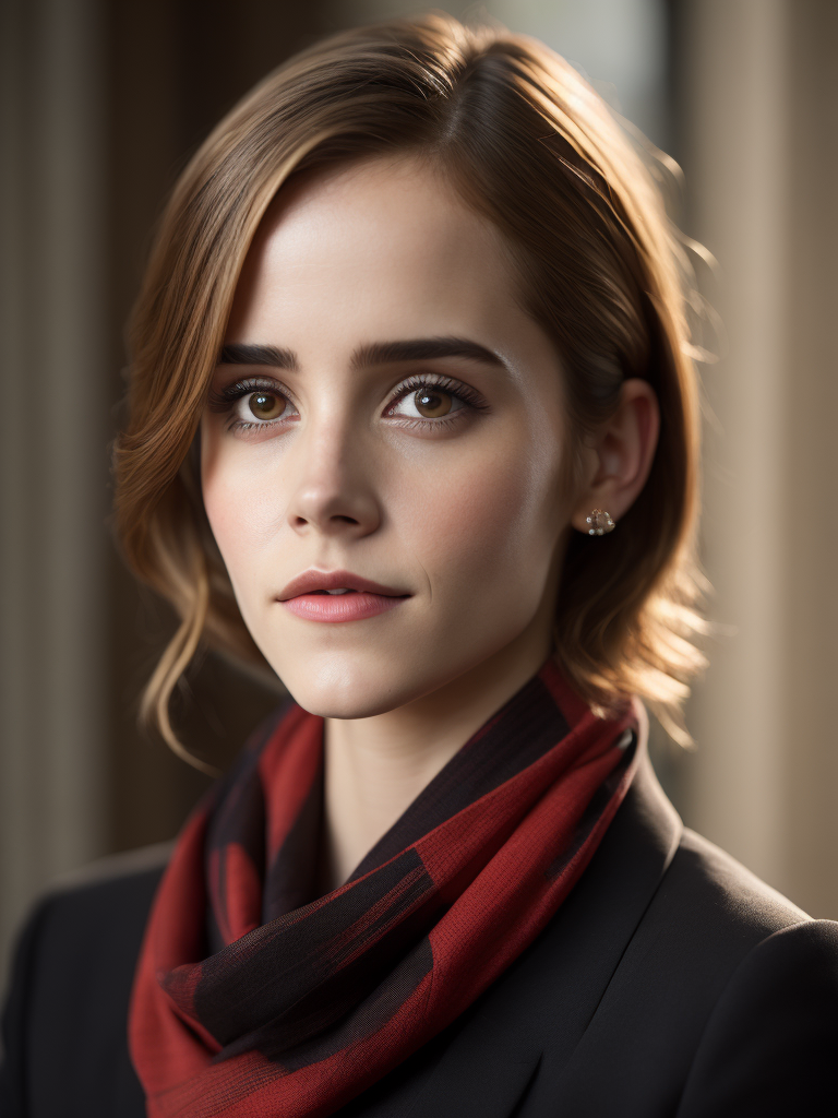 Portrait of Emma Watson wearing black blouse with red scarf, ultra realistichttps://lumenor.ai/terms-of-service/https://lumenor.ai/ai-generated-images-gallery/h7fXX5aj1E/lumenor AIlumenor AI