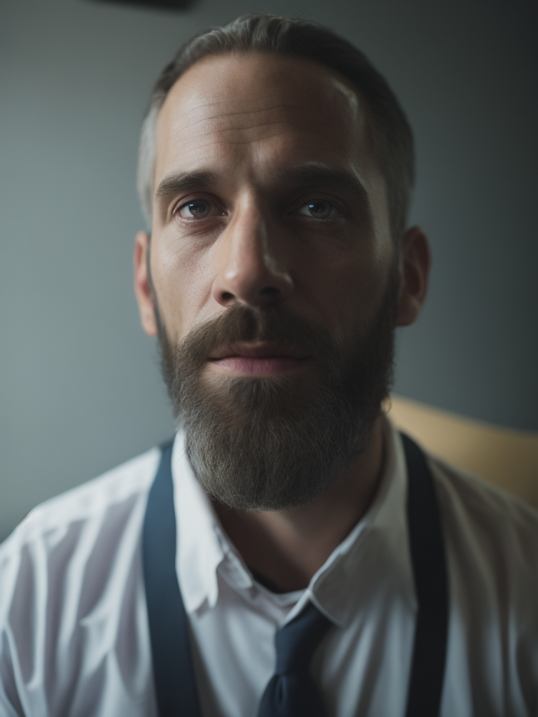 Portrait of Homer Simpson as a real person, white shirt, Dramatic Lighting, Depth of field, Incredibly high detailed