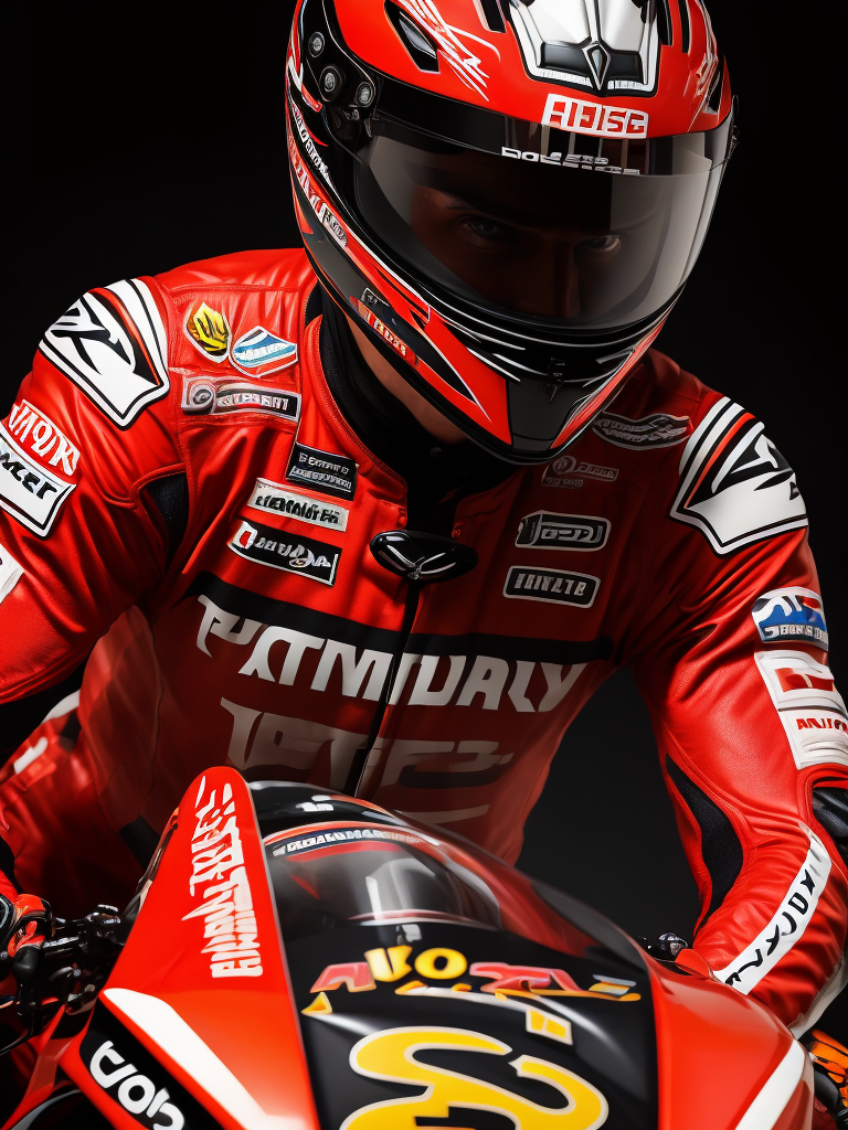 portrait of motogp racer on a bike, red colors, on the background of the race track