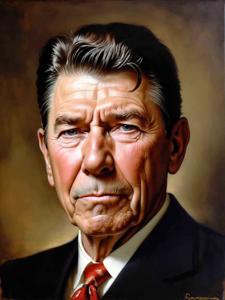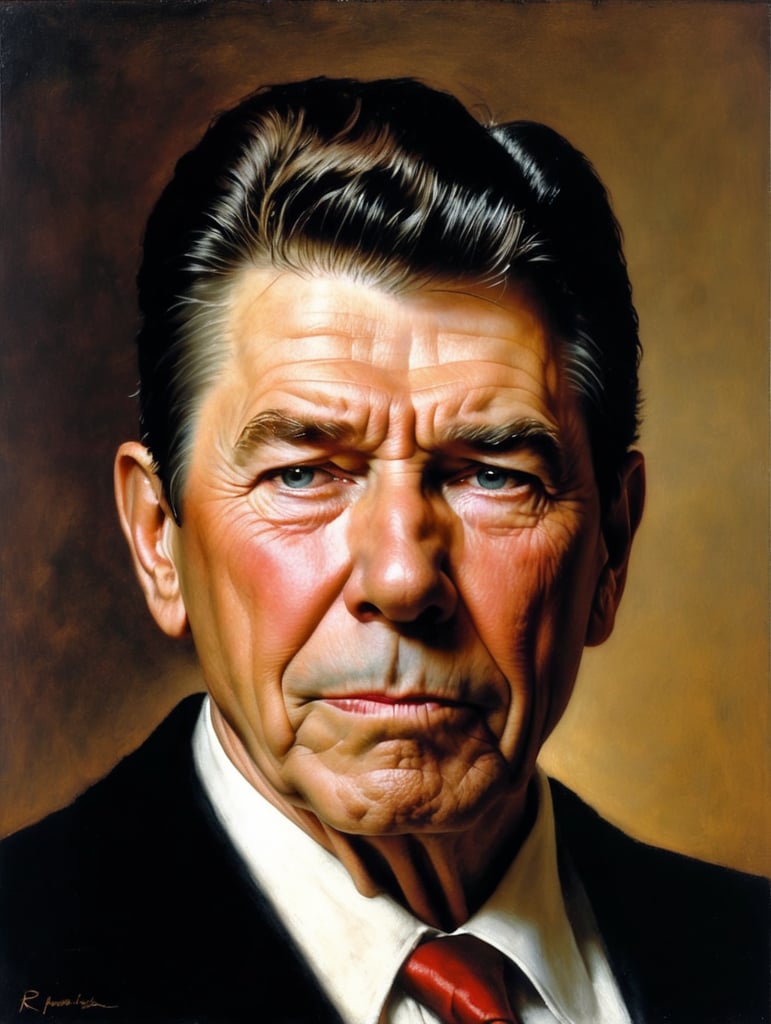 - ronald reagan rembrandt portrait sad face america sorry art historical figure presidential expression