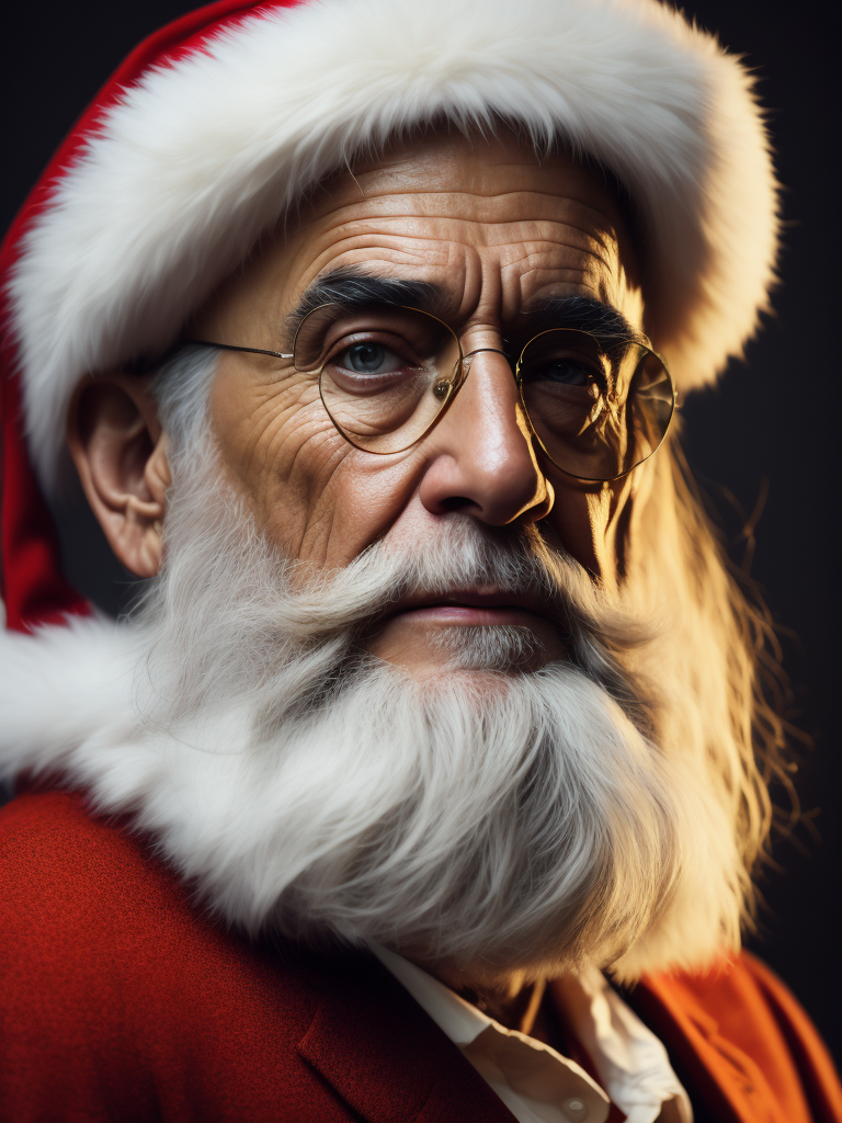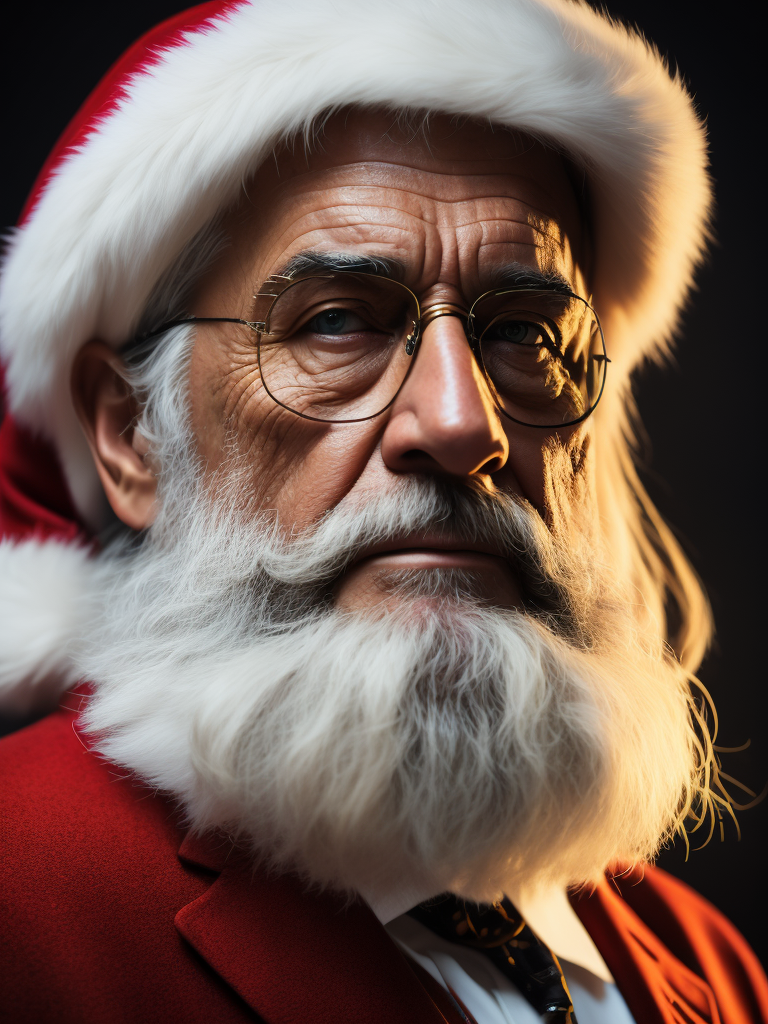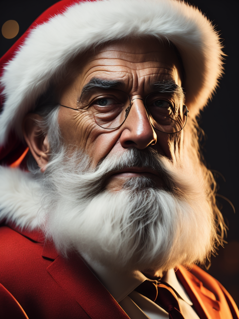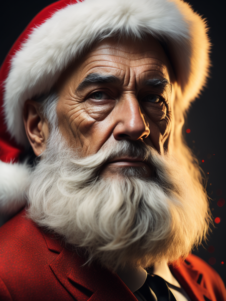 Portrait of Santa Claus, bright and saturated colors, elegant, highly detailed, vogue, fashion magazine, sharp focus, bright expressive makeup, dramatic lighting, depth of field, incredibly high detailed, blurred background