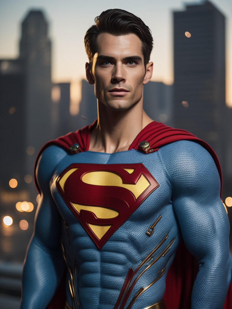 Portrait of a superman in a knitted suit, a blue suit with a red and yellow superman logo on the chest, a city in the background, a blurred background, professional shot, bright saturated colors, sharp focus, highly detailedhttps://lumenor.ai/terms-of-service/https://lumenor.ai/ai-generated-images-gallery/hB99JZv6O7/lumenor AIlumenor AI