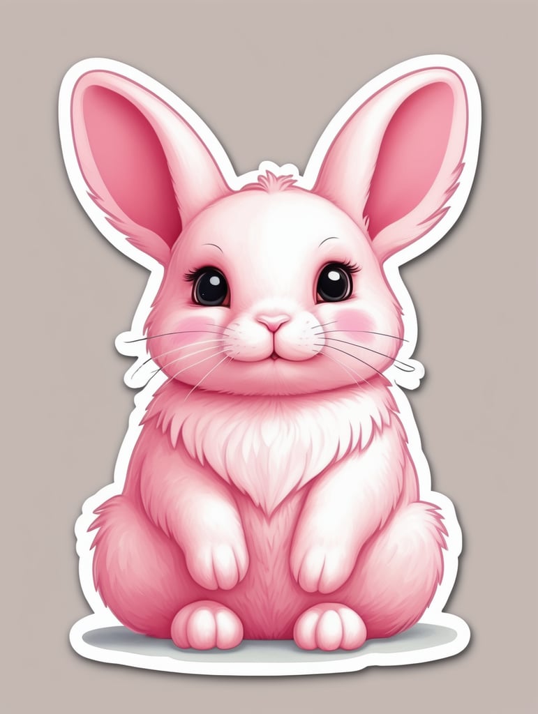 - minimalism cartoon cute pink rabbit printable sticker white background rabbit illustration adorable sticker design cute animal art