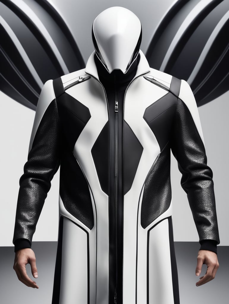 product design futuristic jacket coat fashion litmus elegant black white gray gradient alexander mcqueen spaceship shape metallic slim fit elegant futuristic space ship black gradient futuristic traslucid upper dark black SLIP ON futuristic design zaha hadid architects design gradient suede plastic metallic leather suede photo product scene luxury waterproof matte parts concept luxury materials white luxury materials