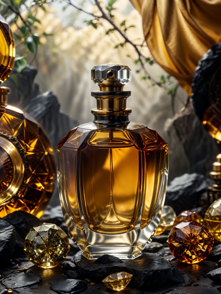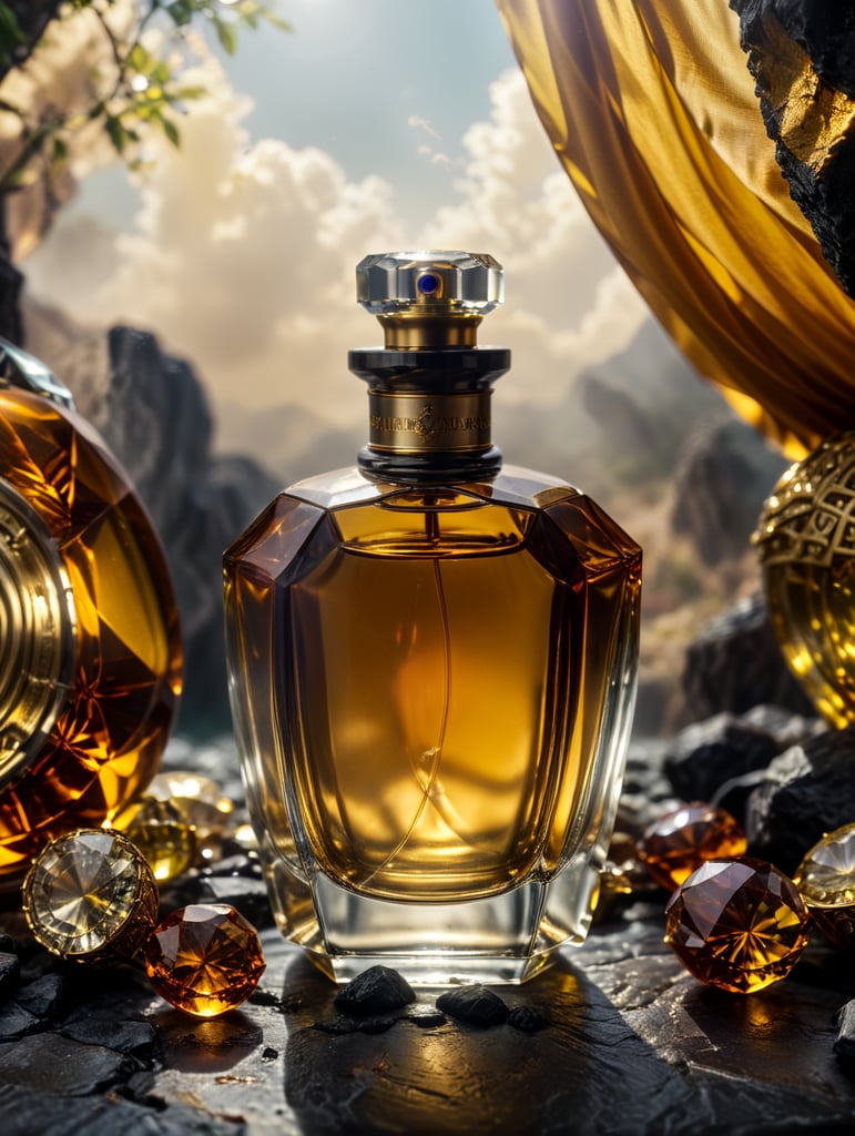 professional photography, cinematic shot of a luxury perfume, surrounding an amber gems, yellow satin scarf background, no label, clear, mockuphttps://lumenor.ai/terms-of-service/https://lumenor.ai/ai-generated-images-gallery/htRa1A5ZOn/lumenor AIlumenor AI
