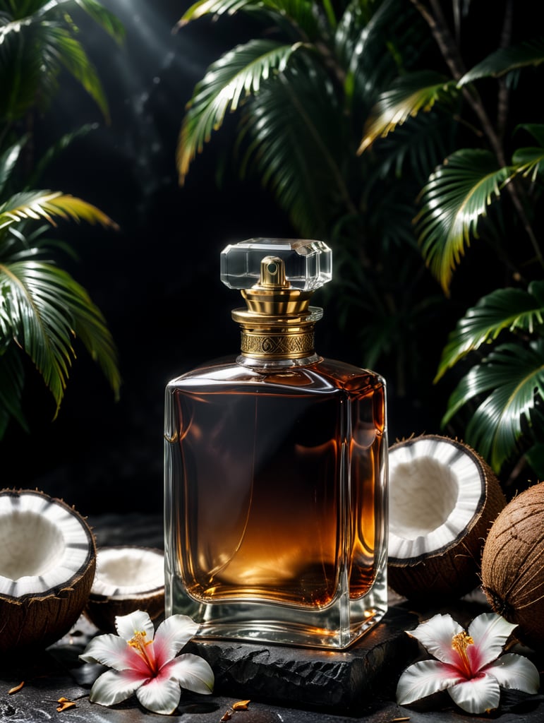 professional photography of a luxury perfume, square bottle, surrounding a coconut, no label, clear, mockuphttps://lumenor.ai/terms-of-service/https://lumenor.ai/ai-generated-images-gallery/ht5S2pjnL0/lumenor AIlumenor AI