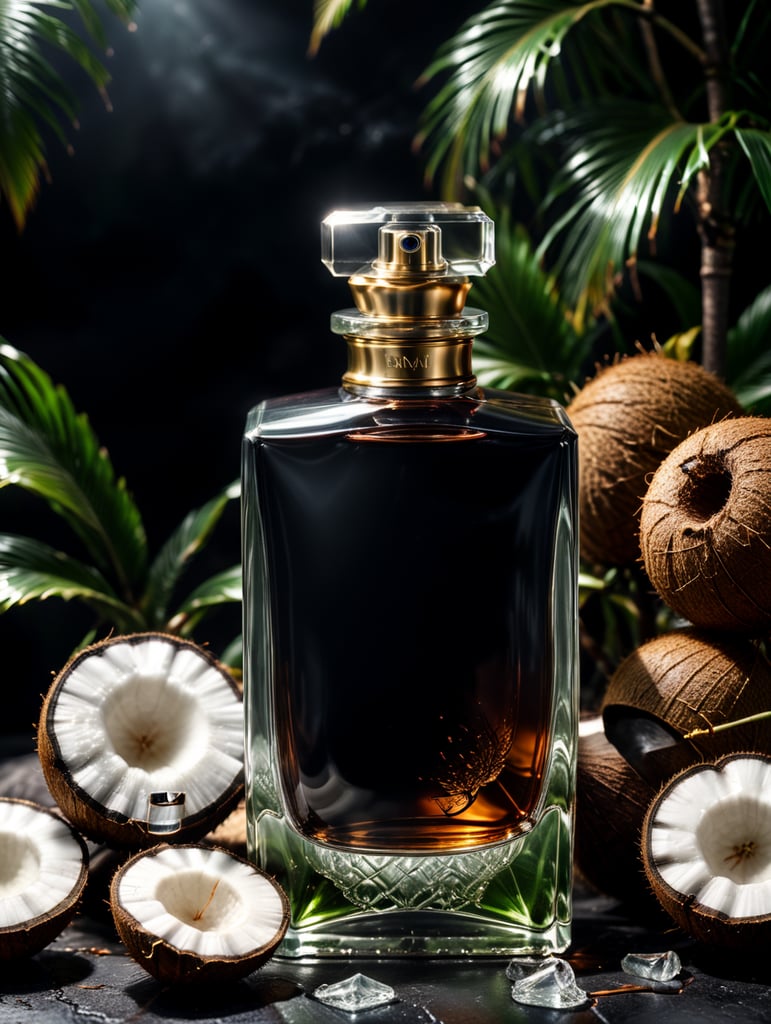 professional photography of a luxury perfume, square bottle, surrounding a coconut, no label, clear, mockuphttps://lumenor.ai/terms-of-service/https://lumenor.ai/ai-generated-images-gallery/ht5cmLzuaT/lumenor AIlumenor AI