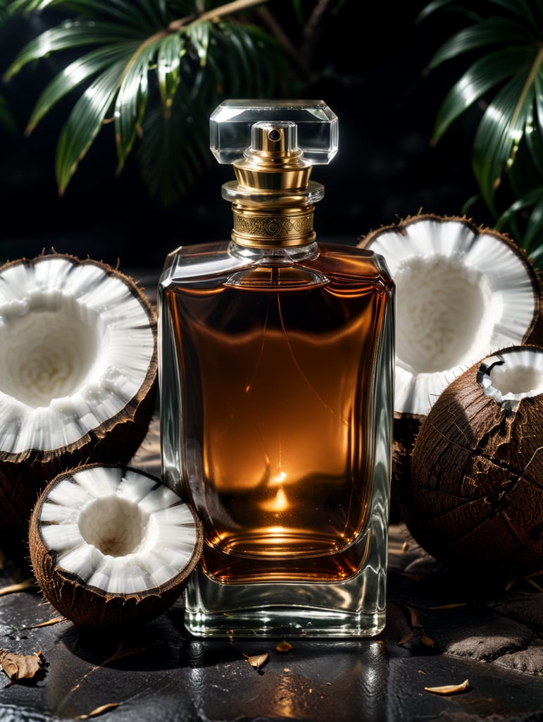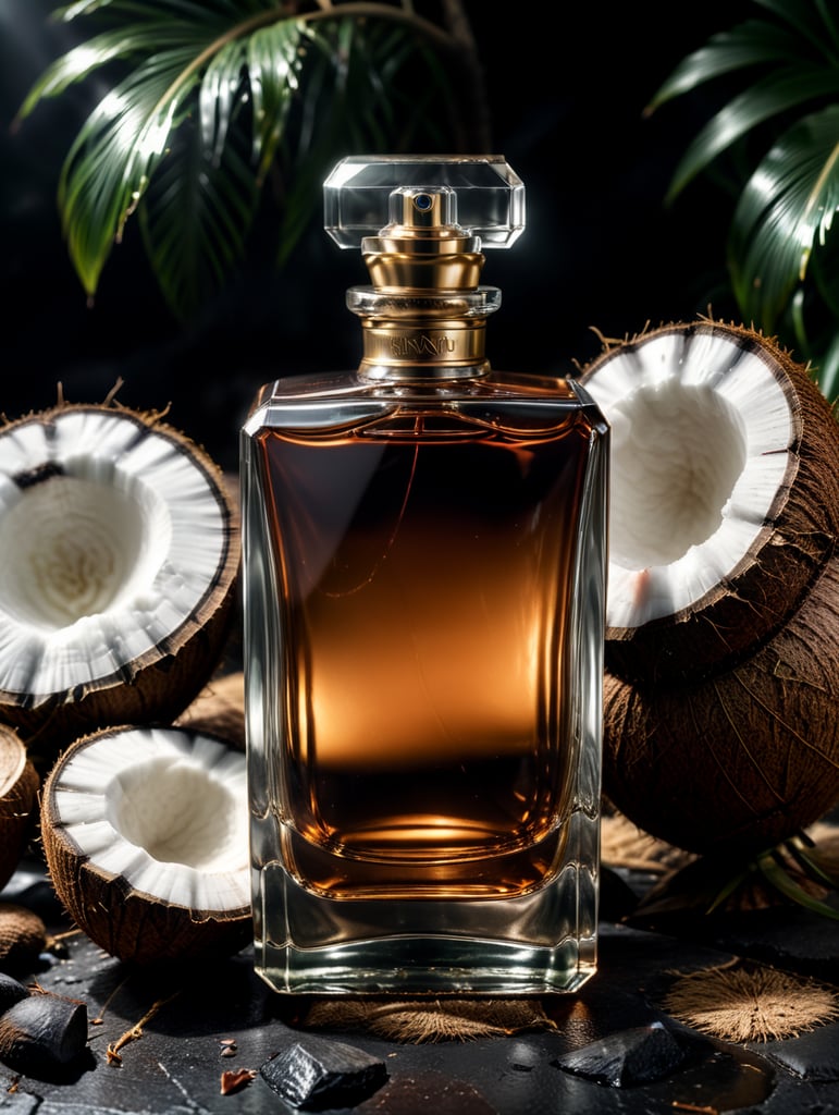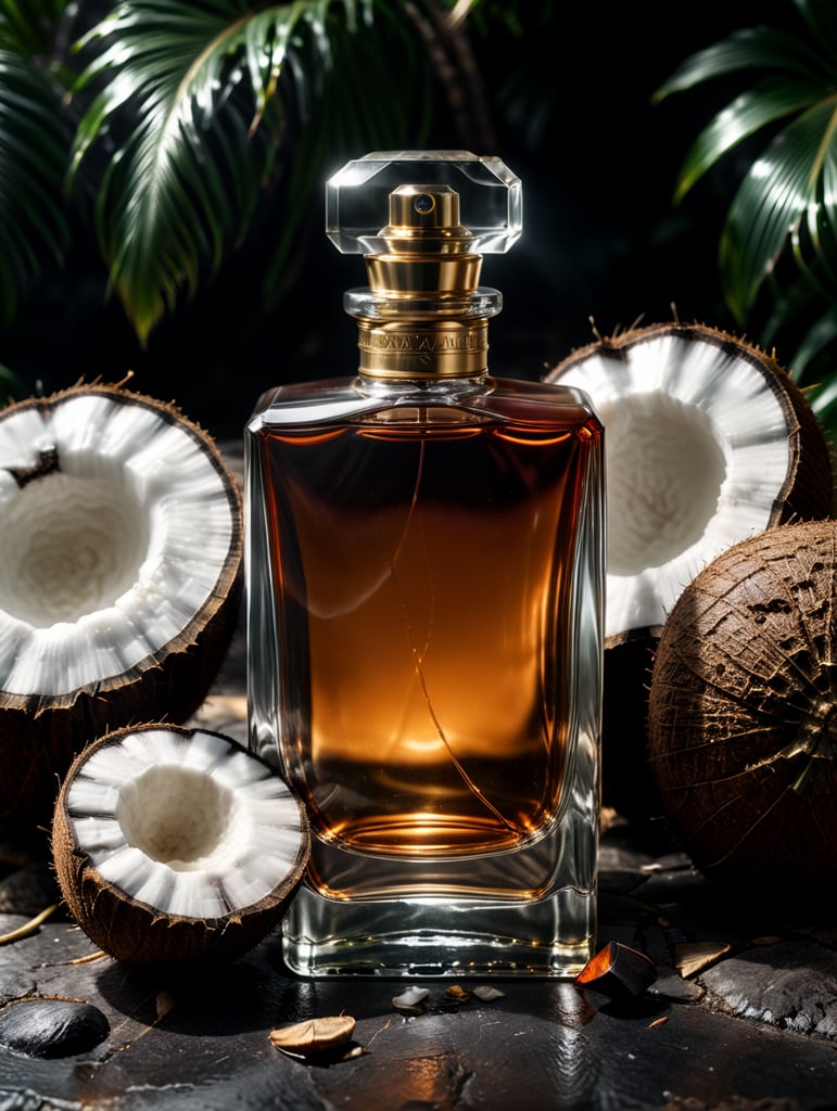 professional photography of a luxury perfume, square bottle, surrounding a coconut, no label, clear, mockuphttps://lumenor.ai/terms-of-service/https://lumenor.ai/ai-generated-images-gallery/htfjfarrSF/lumenor AIlumenor AI