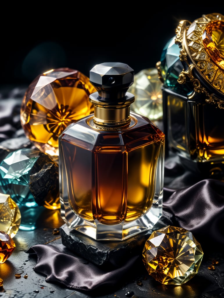 professional photography of a luxury perfume, surrounding an amber gems, yellow satin scarf background, no label, clear, mockuphttps://lumenor.ai/terms-of-service/https://lumenor.ai/ai-generated-images-gallery/htRIGcInxn/lumenor AIlumenor AI