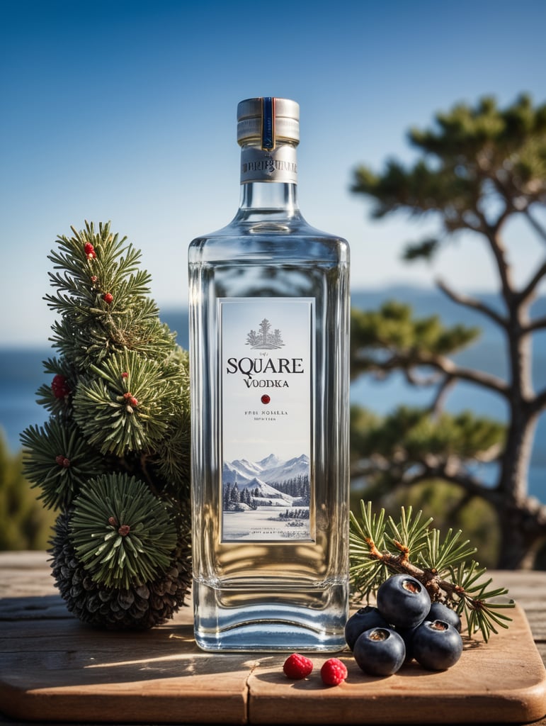 professional photography of a square vodka bottle, square bottle, surrounding a juniper and juniper berries, one shot of vodka in a front, no label, clear, mockuphttps://lumenor.ai/terms-of-service/https://lumenor.ai/ai-generated-images-gallery/RhktCqWZ5/lumenor AIlumenor AI