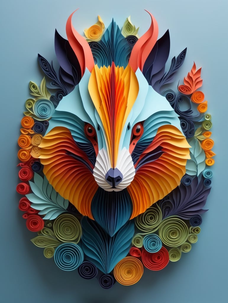 - rakun head minimalistic design colorful organic forms energy assembled layers vibrant 3d abstract art light blue background depth perception alive and dynamic