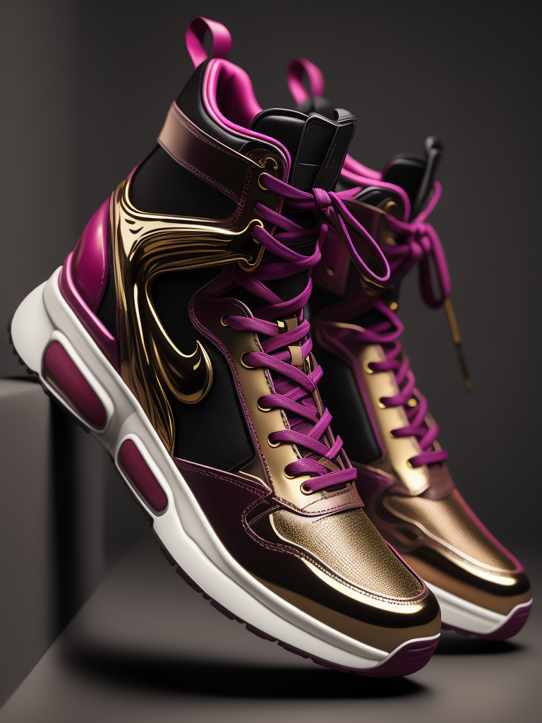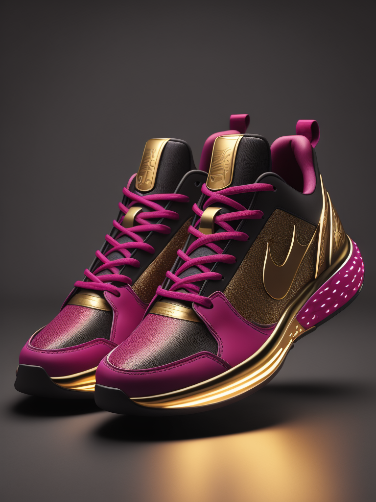 realistic photo of women sneaker shoes, with colors viva magenta, pink and golden lines