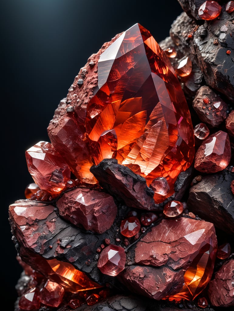 red Rock crystal on a dark background, macro photography shot on Hasselblad H6D at 135mm, beautiful colorshttps://lumenor.ai/terms-of-service/https://lumenor.ai/ai-generated-images-gallery/h3jYHovnMP/lumenor AIlumenor AI