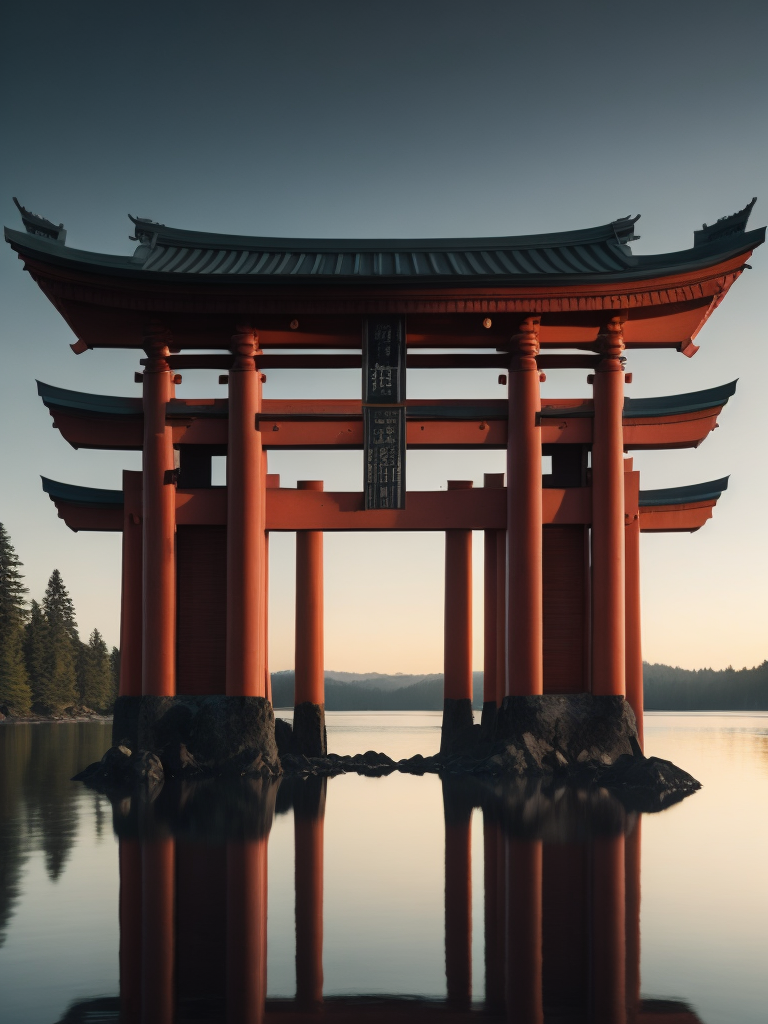 Red torii gate in middle of a lake, Dense forest on the edge of the lake, Bright and saturated colors, Japanese culture, photorealistic, contrast lighthttps://lumenor.ai/terms-of-service/https://lumenor.ai/ai-generated-images-gallery/h7vwcgwmcK/lumenor AIlumenor AI