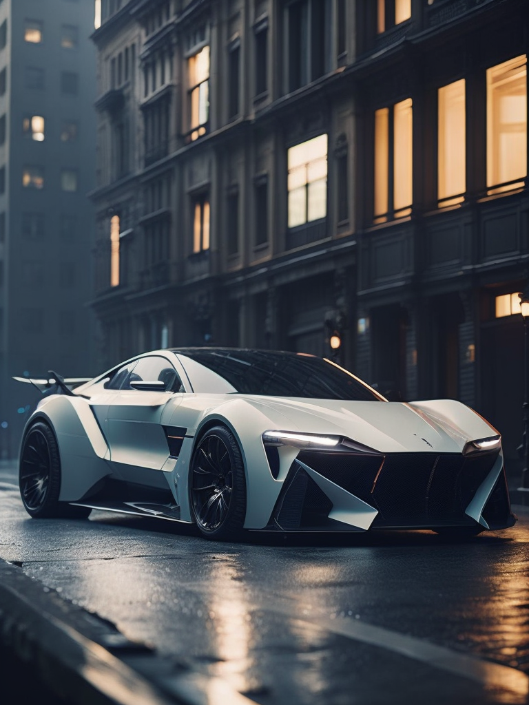- 8k resolution futuristic design cyberpunk aesthetics hyper realistic imagery white body car daylight scene blade runner vibes futuristic technology sci fi car design high tech futuristic image