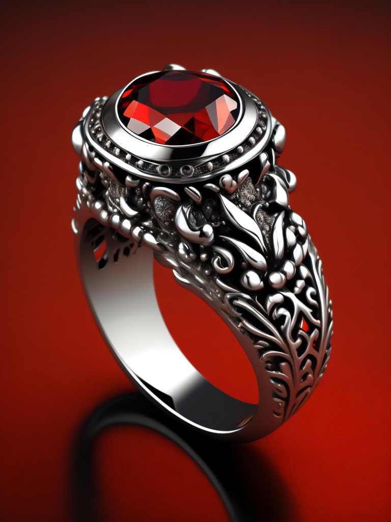 Royal silver ring with ruby, fantasy style, bright red background, rich colors, contrasting light, deep colors, high detailshttps://lumenor.ai/terms-of-service/https://lumenor.ai/ai-generated-images-gallery/hPiigWG2bC/lumenor AIlumenor AI