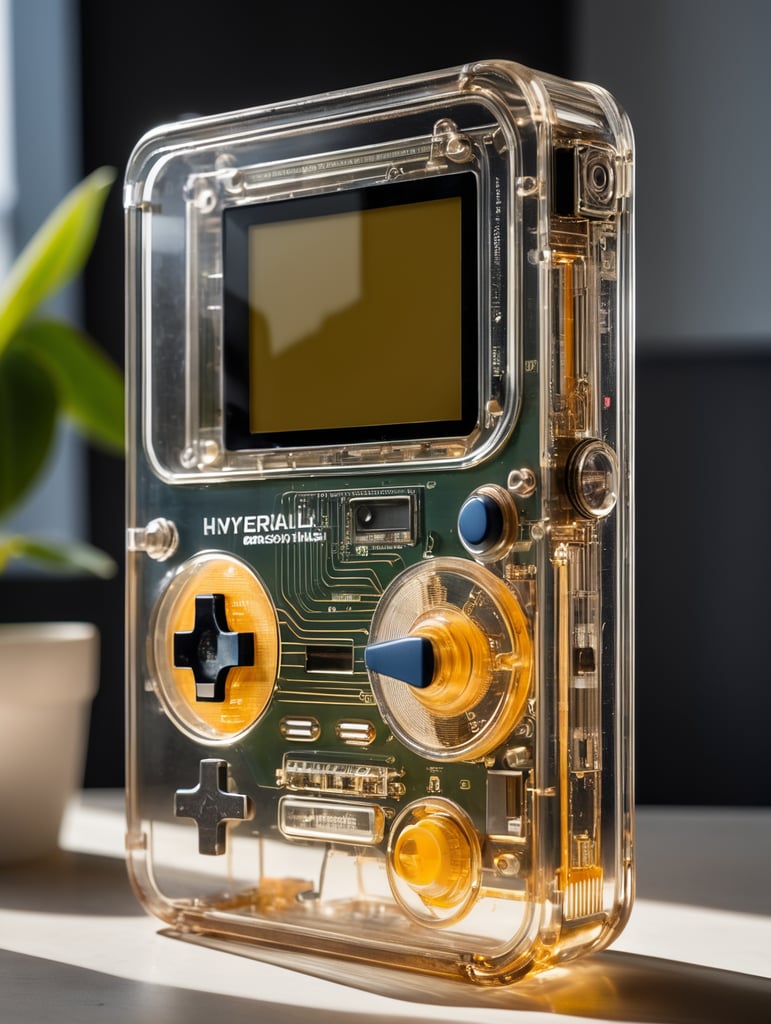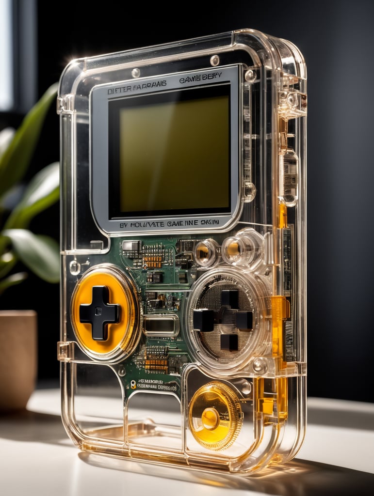 A see through polycarbonate game boy designed by dieter rams. industrial design inspiration. unreal engine render, natural lighting, on desk, beautiful shothttps://lumenor.ai/terms-of-service/https://lumenor.ai/ai-generated-images-gallery/hqE6Vwv81P/lumenor AIlumenor AI