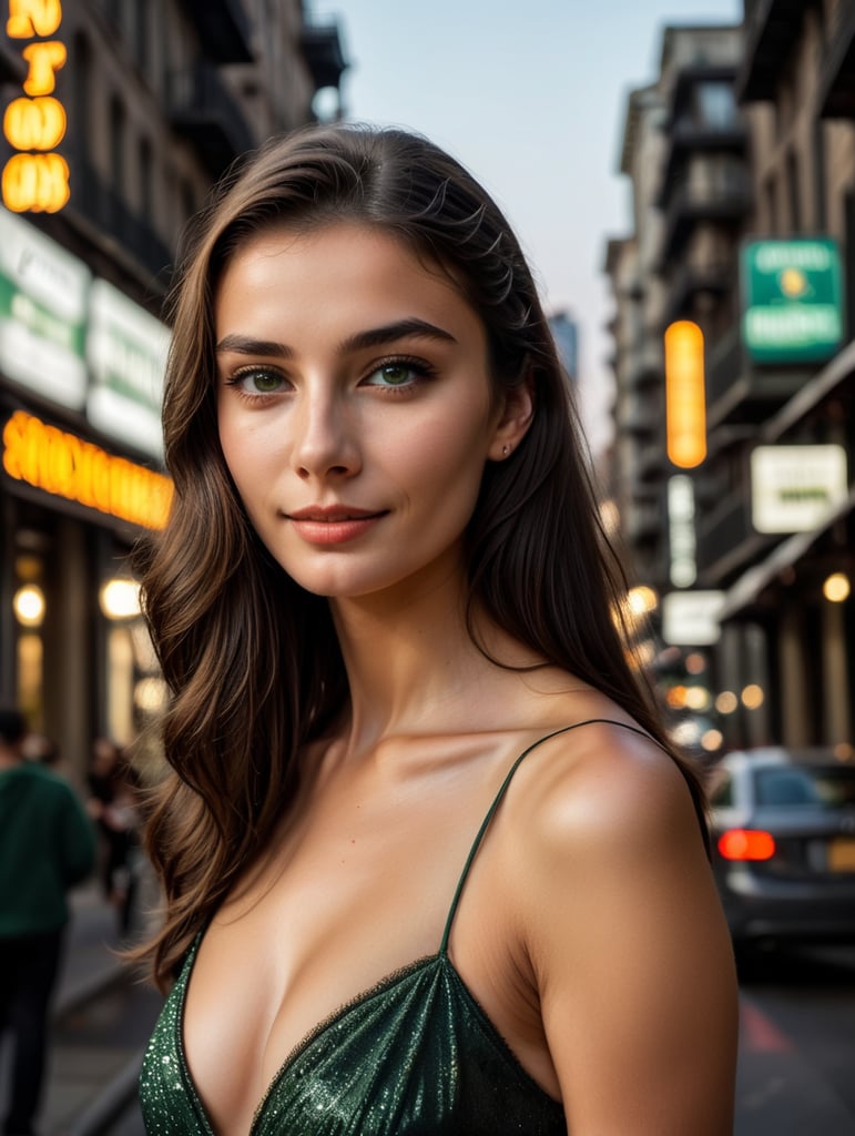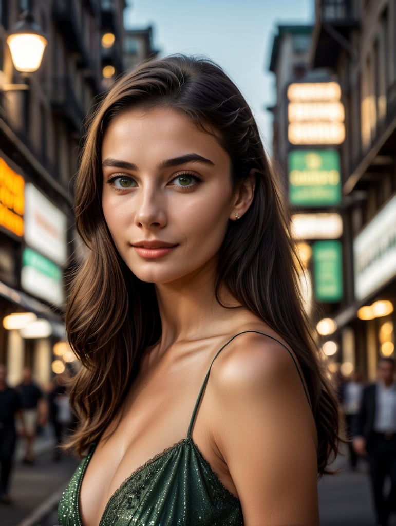 - nighttime photography female beauty italian girl stylish fashion audrey hepburn inspired new york city nightlife green eyed beauty mischievous smile urban landscape perspective photography