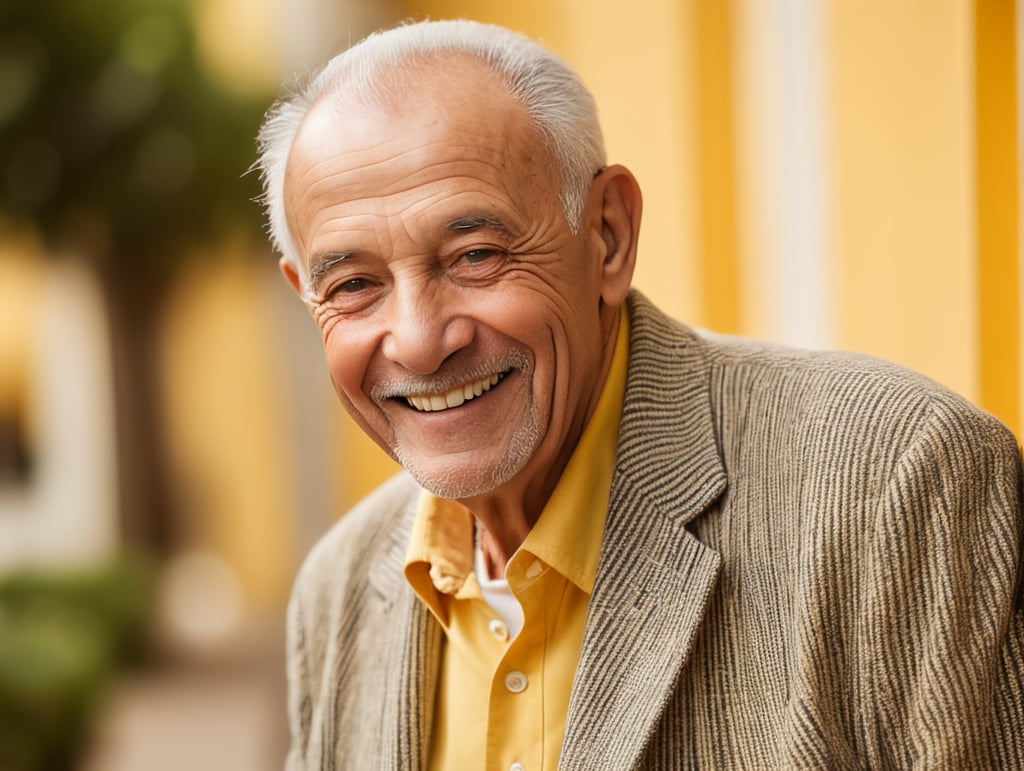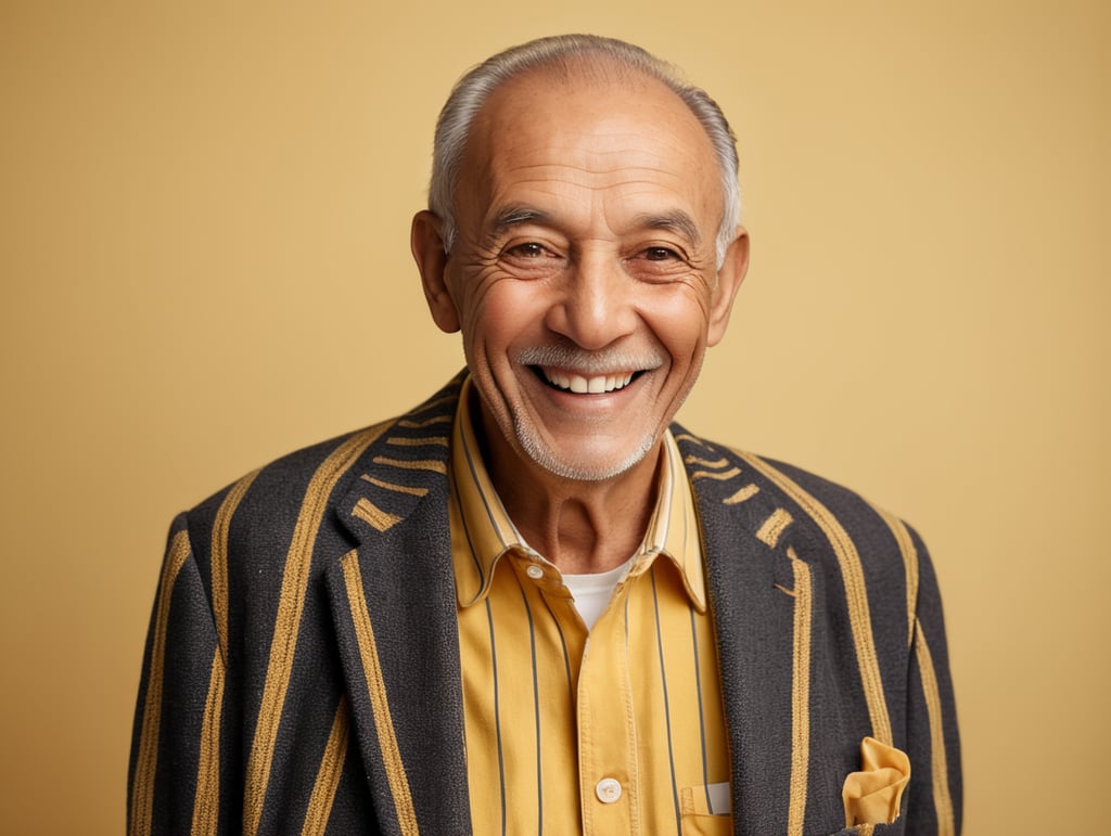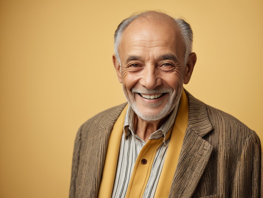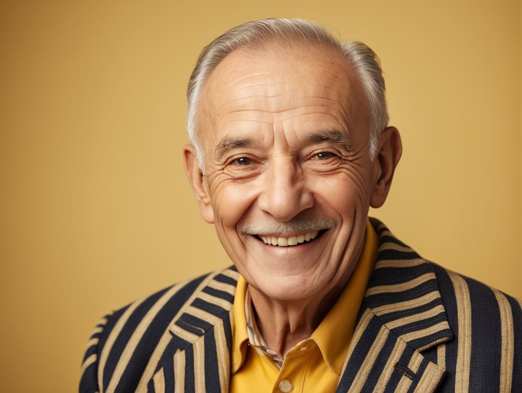 Smiling and cheerful old man in a striped jacket on an isolated yellow backgroundhttps://lumenor.ai/terms-of-service/https://lumenor.ai/ai-generated-images-gallery/hST36puqxK/lumenor AIlumenor AI