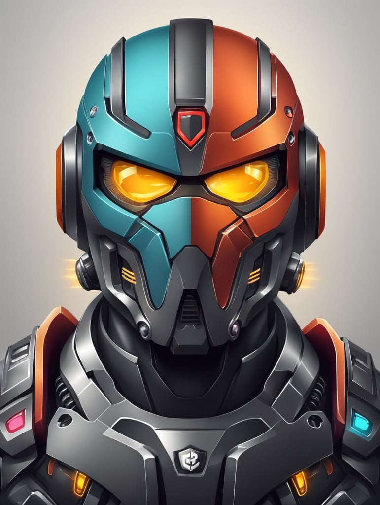 Soldier robot mask mascot logo, e-gaming, bright colors, Gaming Logo, vector image