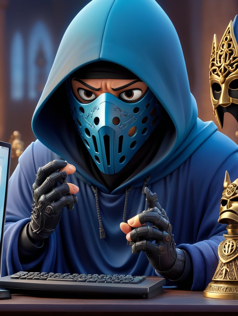 - hacker hoodie broken mask computer one handed statue of justice cybersecurity technology digital crime digital justice