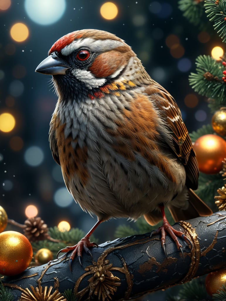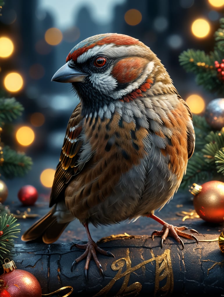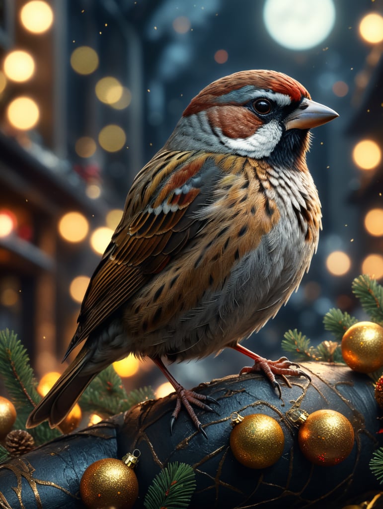 - sparrow mopndi bird on a mopndi new year's eve text to image sparrow on a mopndi new year celebration bird on a branch festive bird night scene