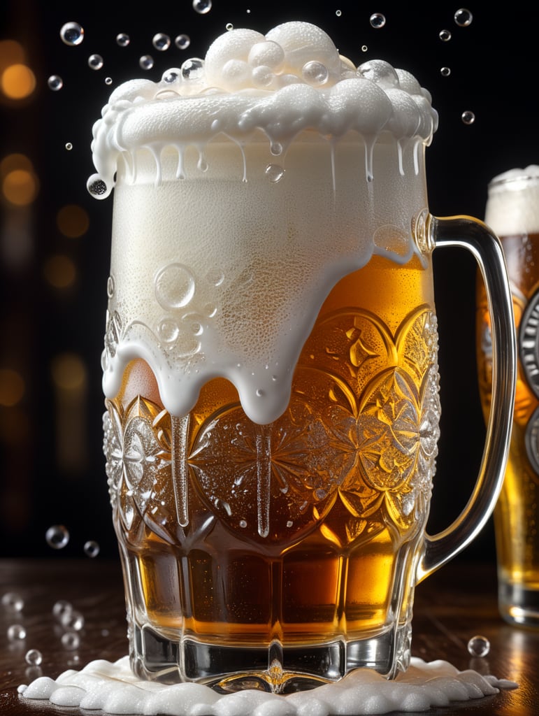- beer art foam masterpiece transparent refreshment gas bubbles galore advertisement beauty highly detailed imagery intricate text to image hypermaximalist visuals ornate beer illustration luxurious picture
