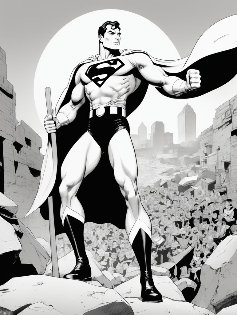 Super man, DC Comics, Black and White, USA, style of Alex Toth