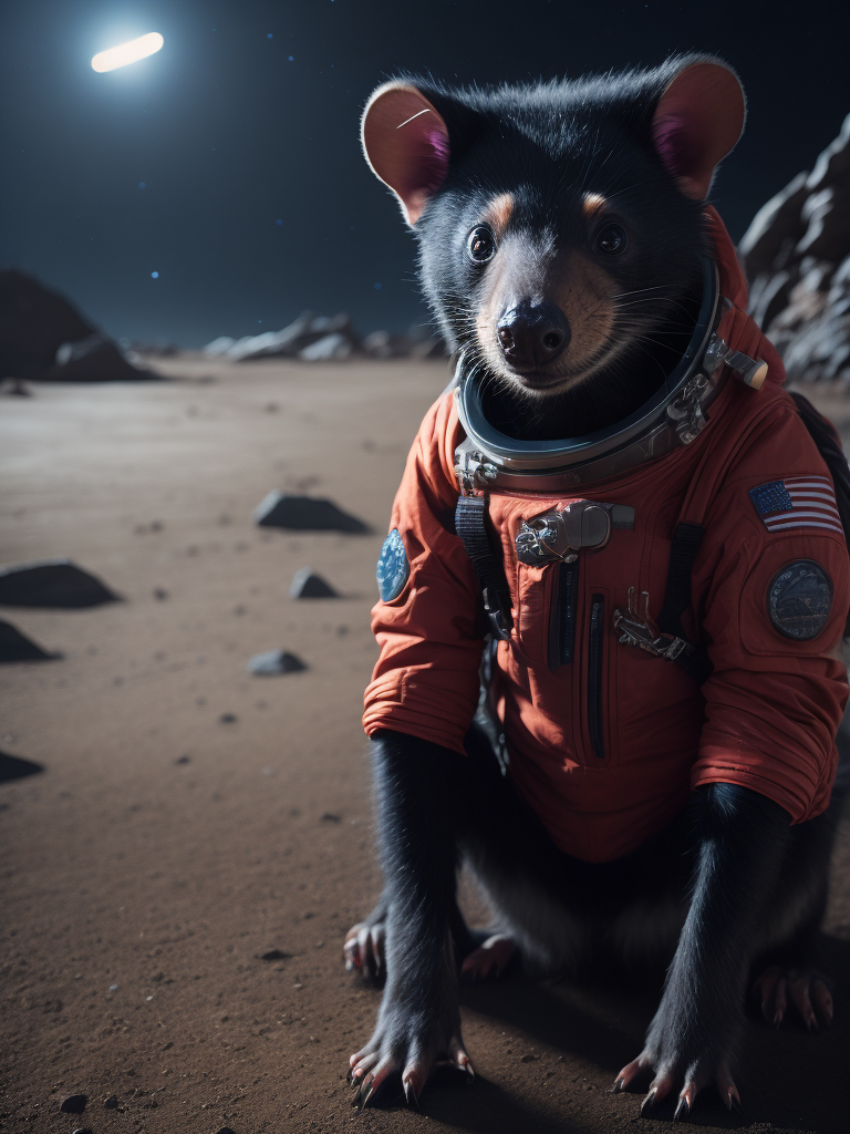 - tasmanian devil astronaut costume planet mars space exploration extraterrestrial life sci fi fantasy red planet alien landscape intergalactic adventure mars mission