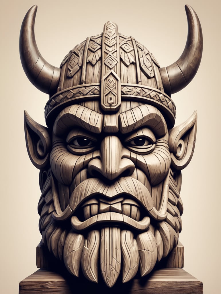 - tiki bar totem pole mascot head viking polynesian tribal beach bar carved wood tropical drink aloha spirit