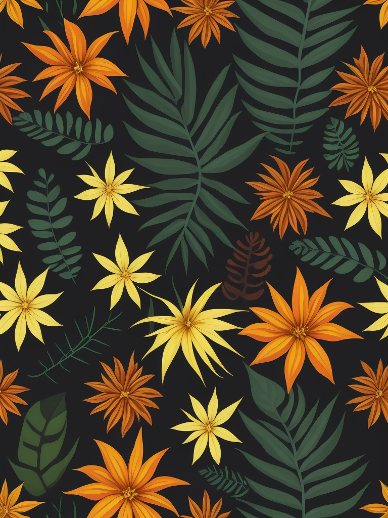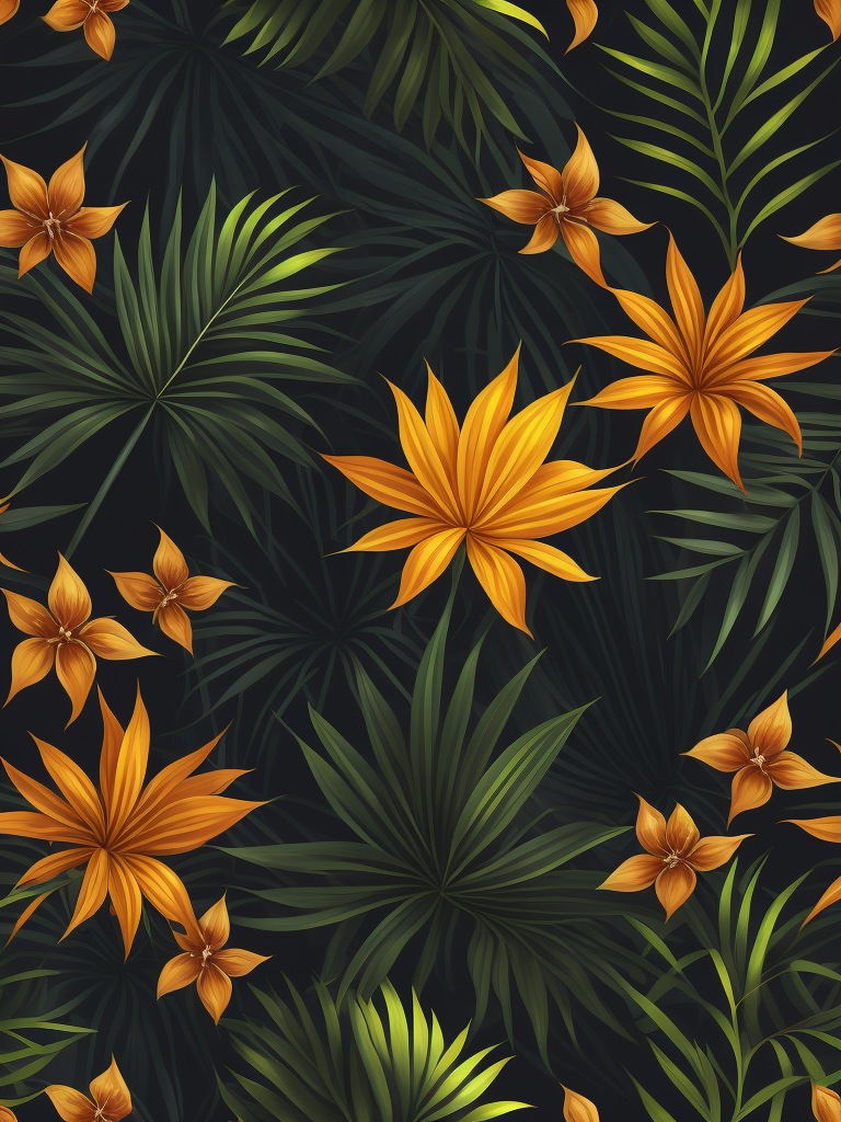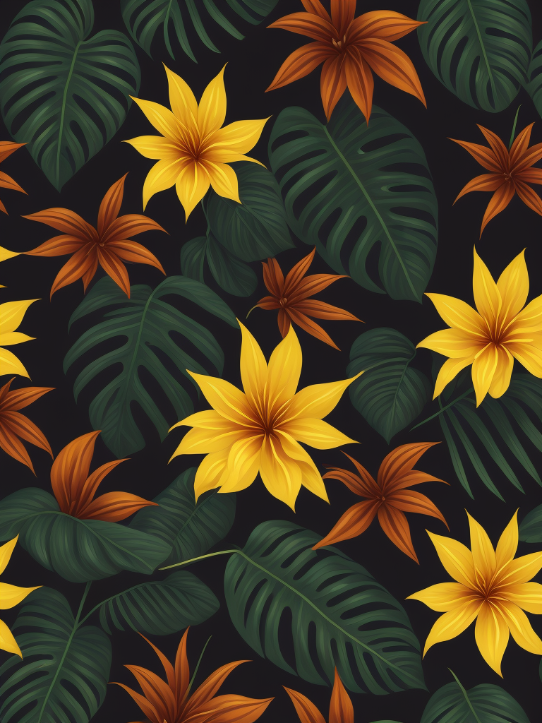 Tropical pattern, background, top view, vector pattern, seamless texture, detailed texture, flat design, vibrant colors
