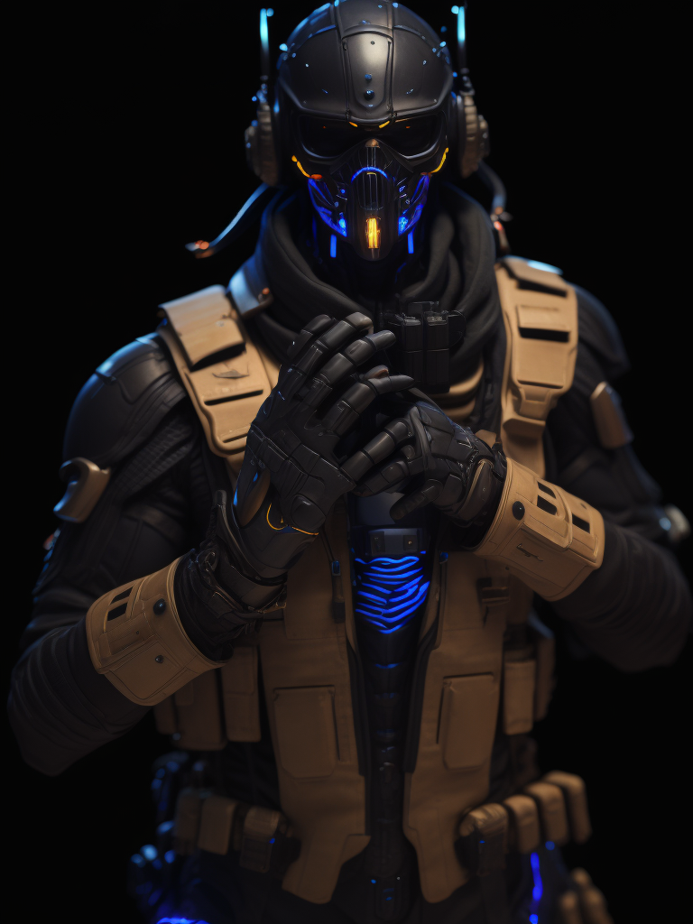 - counter strike soldier anthromorphic cybernetic skeleton metal armor neon lights reflection mapping intricate design dramatic lighting hyperrealism photorealistic