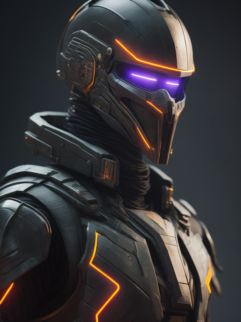 Neon-lit Cyber Soldier: Hyperrealistic Rendering