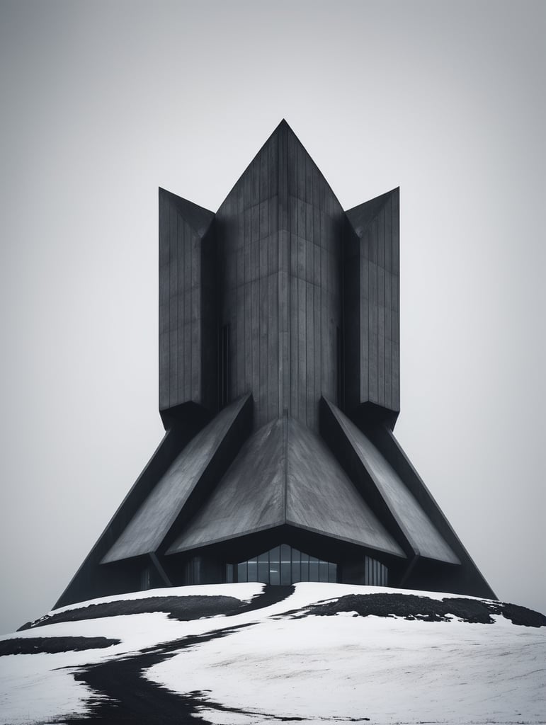 Ultra wide angke cinematic photo of a mesmerically moody dark and gloomy massively monolithic scandinavian minimalism brutalist futuristic structure on an icelandic norwegian scandinavian mountain exterior between two worlds with snow mist and fog and dust styledhttps://lumenor.ai/terms-of-service/https://lumenor.ai/ai-generated-images-gallery/BaHkgxXd2/lumenor AIlumenor AI