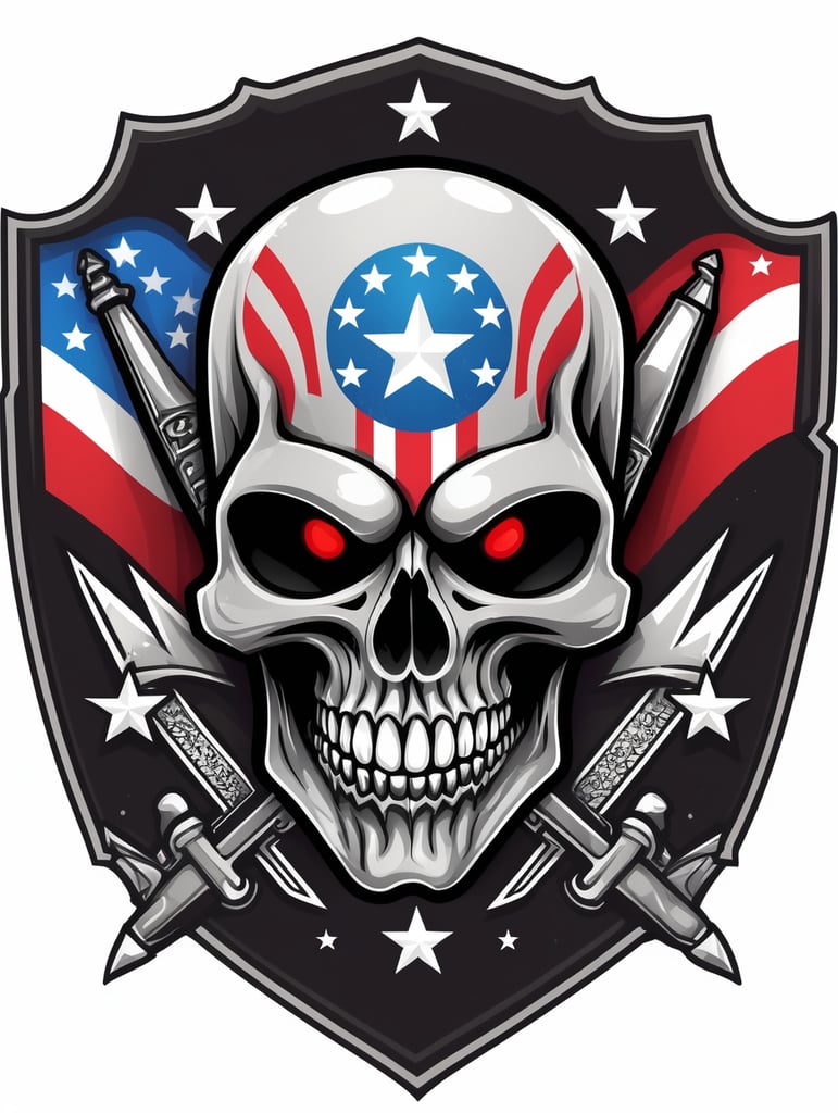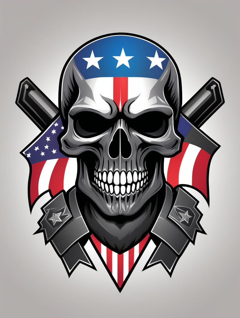 Vector American black skull Ghost with a flag and stars on it mascot logo, e-gaming, bright colors, Gaming Logo, vector image