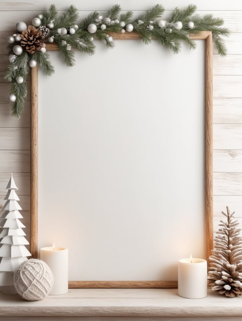 - vertical picture wall mockup natural christmas cozy log cabin neutral colors christmas decor holiday vibes rustic charm interior design festive season textured background