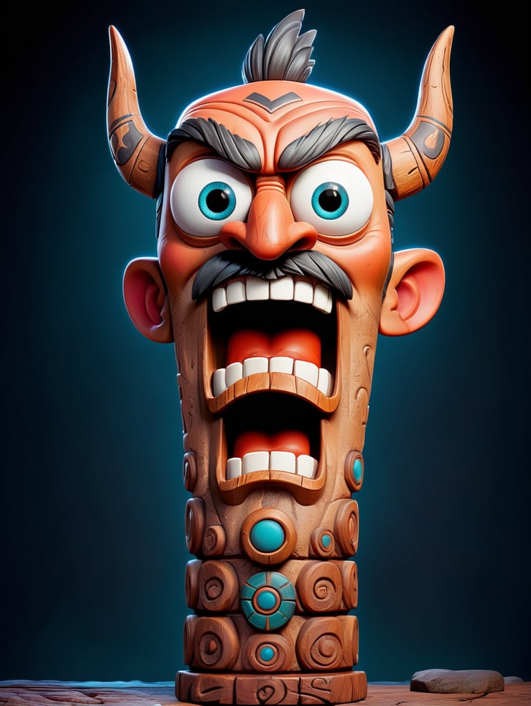viking totem pole, carved wood, aggressive totem, traditional ornament